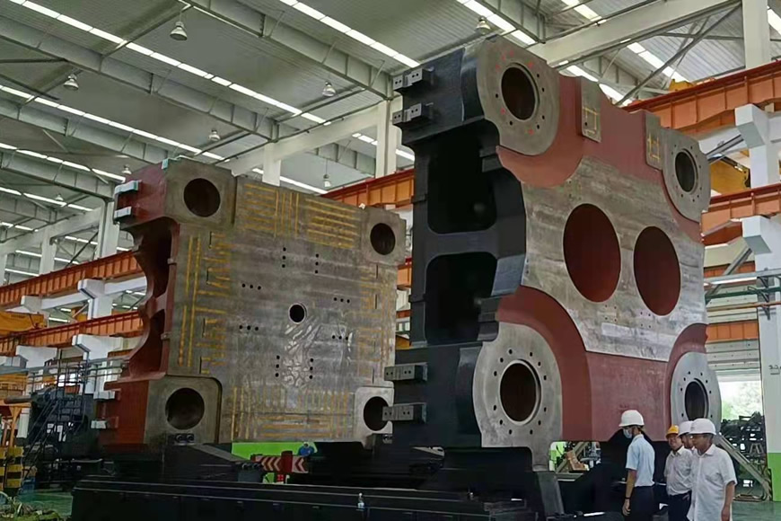 注塑機(jī)是利用塑料成型模具將熱塑性塑料或熱固性塑料制成各種形狀的塑料制品的成型設(shè)備,能滿足航空航天、工程機(jī)械等領(lǐng)域?qū)Τ笮椭破返男枨?。大型球墨鑄鐵模板是注塑機(jī)的關(guān)鍵部件。大連重工是國(guó)內(nèi)少數(shù)幾家能夠研制該類產(chǎn)品的企業(yè),產(chǎn)品型號(hào)涵蓋了244-8500噸鎖模力多種系列,成功為歐洲、北美及國(guó)內(nèi)客戶研制了6600噸級(jí)至8500噸級(jí)多型號(hào)注塑機(jī)模板,為我國(guó)大型注塑機(jī)產(chǎn)業(yè)發(fā)展提供了強(qiáng)有力的裝備技術(shù)支撐。
